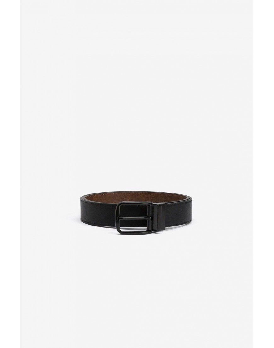 RICHARD Cinturón masculino reversible con hebilla negra, un lado negro y otro marrón.100% POLYURETHANE