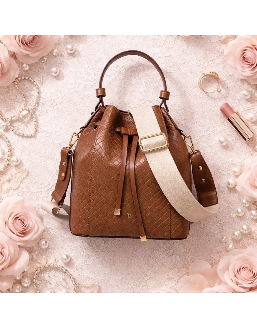 BABBEL Bolso marrón con textura entrelazada, asa ajustable y cierre de cordón. Diseño moderno y funcional.100% POLYURETHANE 265 Marron Bison