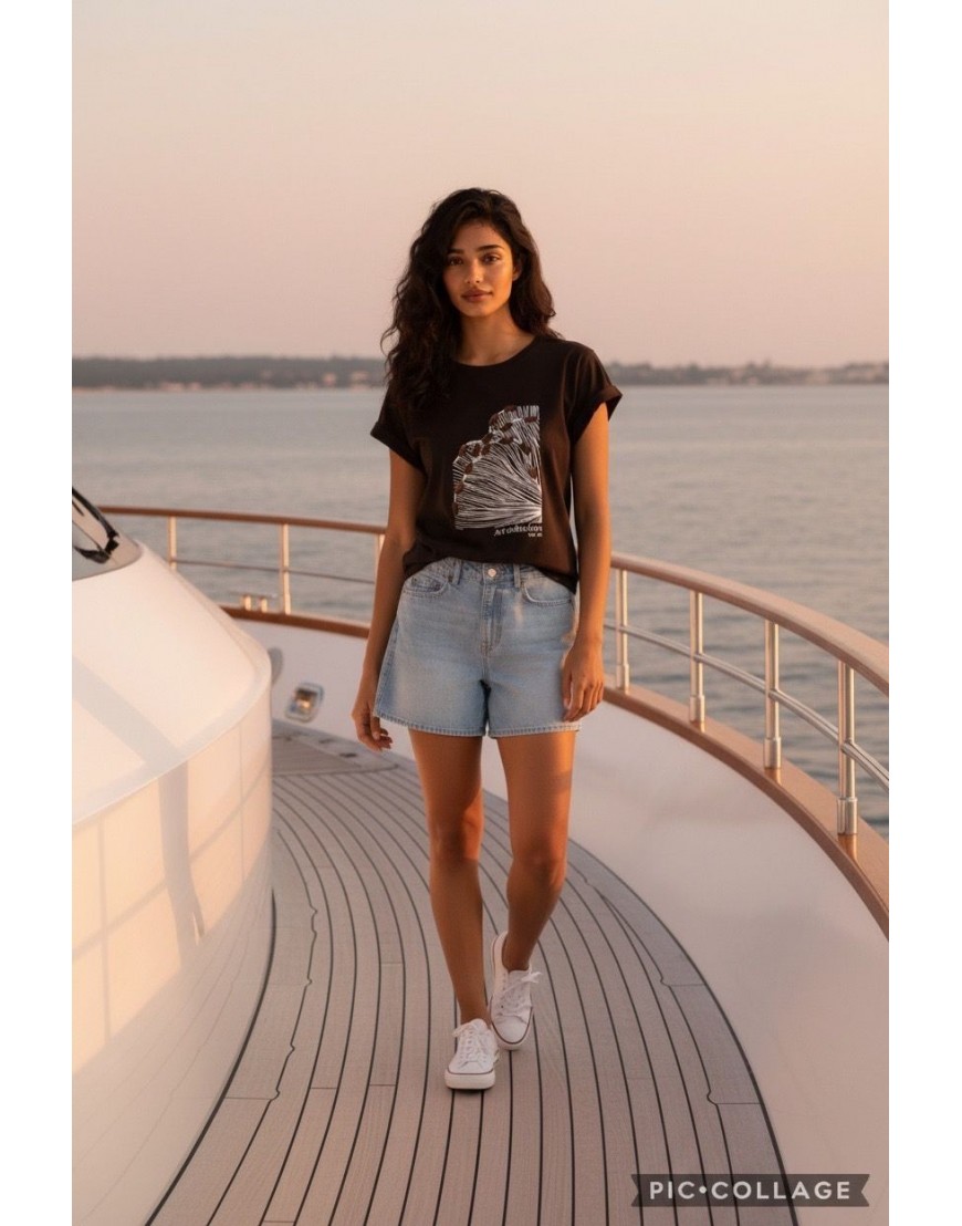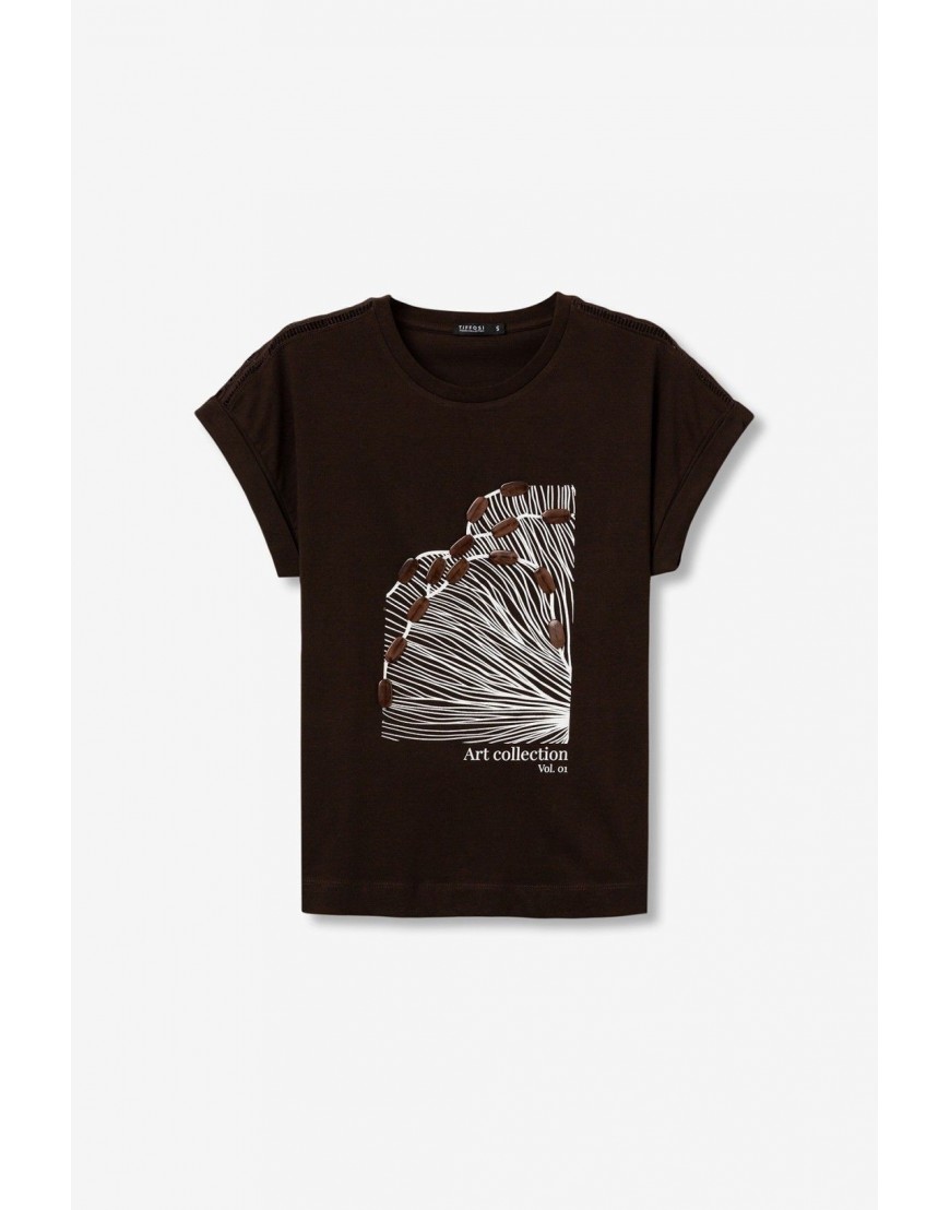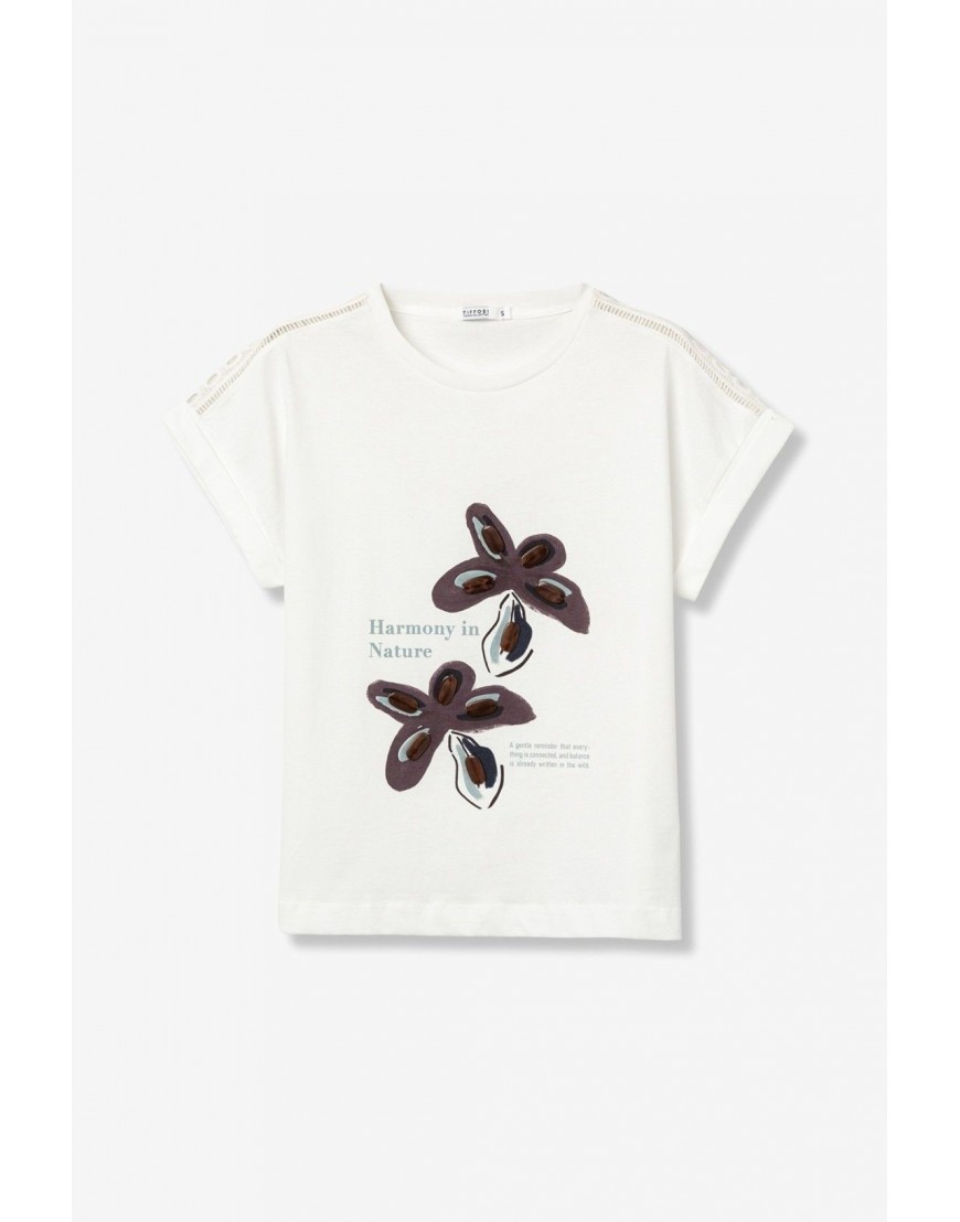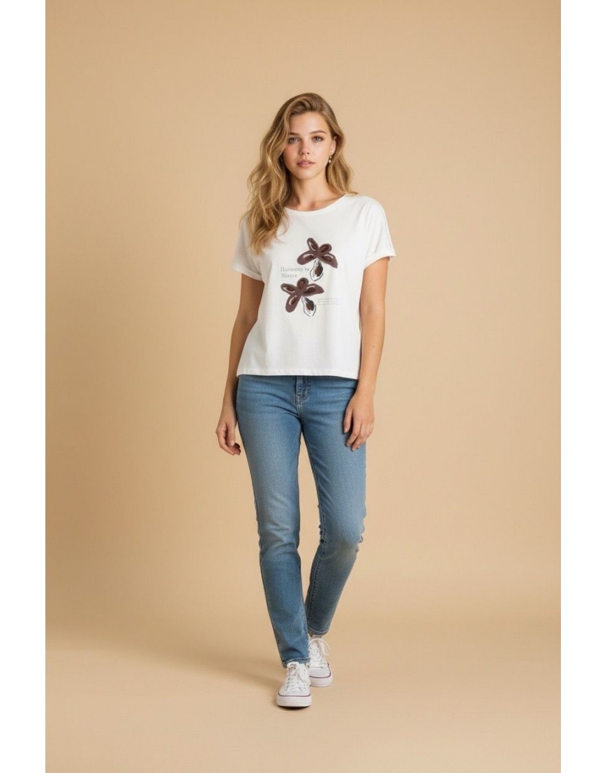 Jermaine Camiseta blanca de corte regular, manga corta y estampado floral oscuro en la parte delantera.100% COTTON