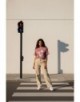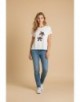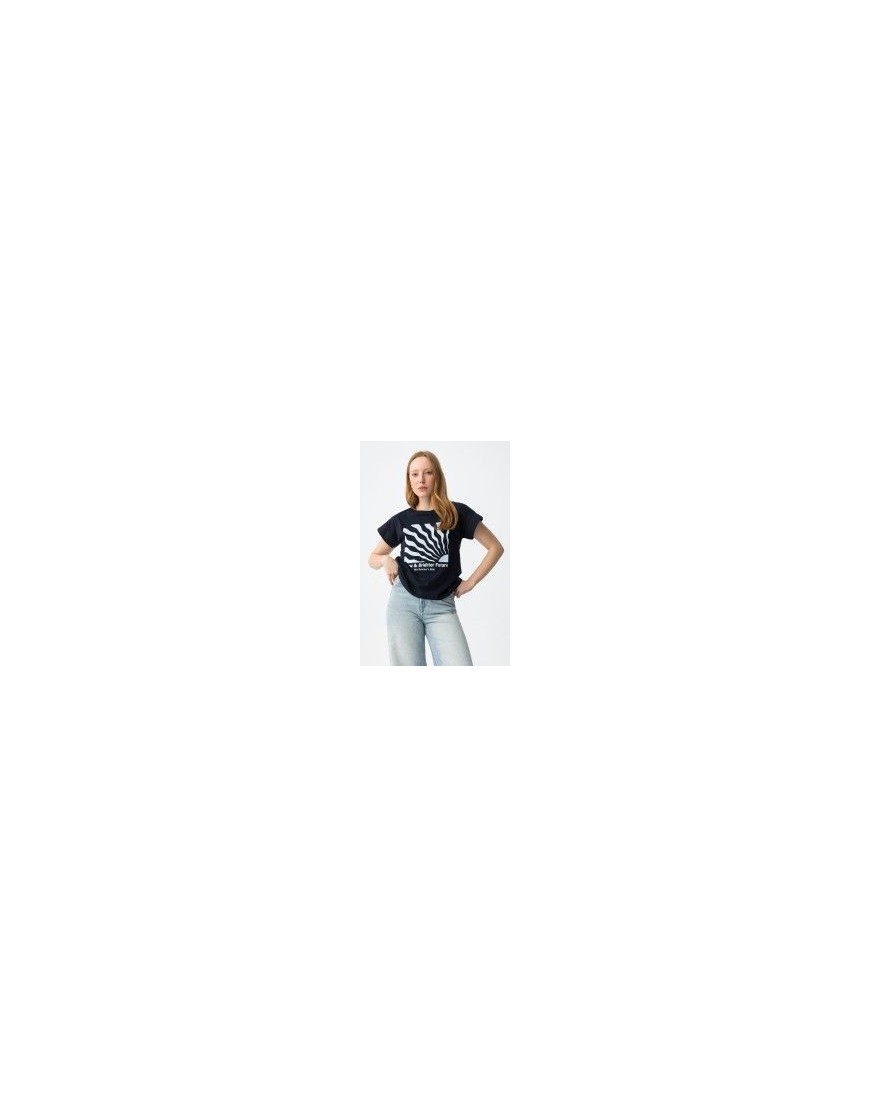 Ella Corte regular, azul oscuro, estampado gráfico frontal blanco, manga corta vuelta, estilo casual moderno.100% COTTON