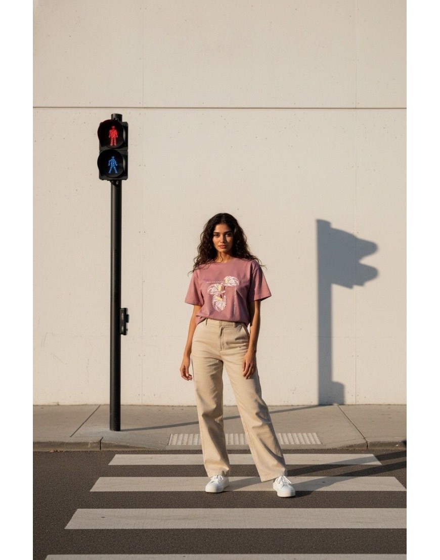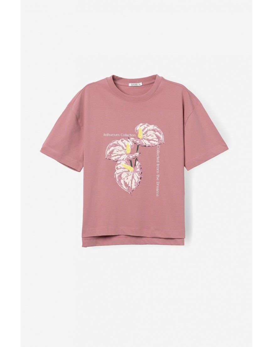 Spoink Camiseta de manga corta en rosa, corte relaxed, con estampado floral y cuello redondo clásico.100% COTTON
