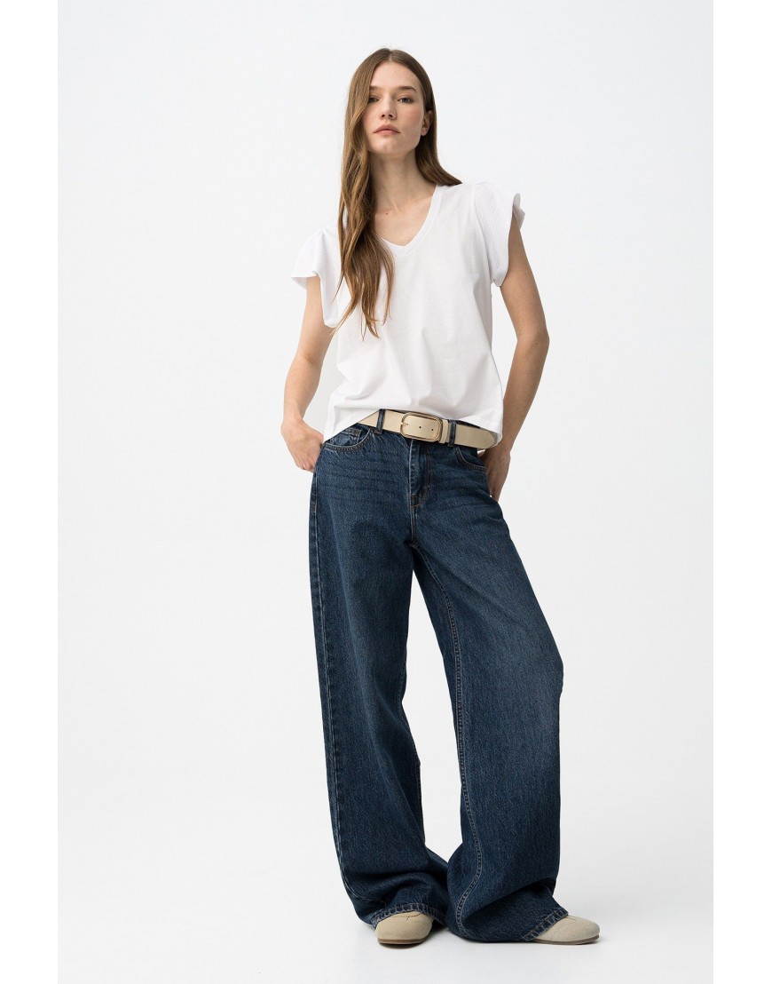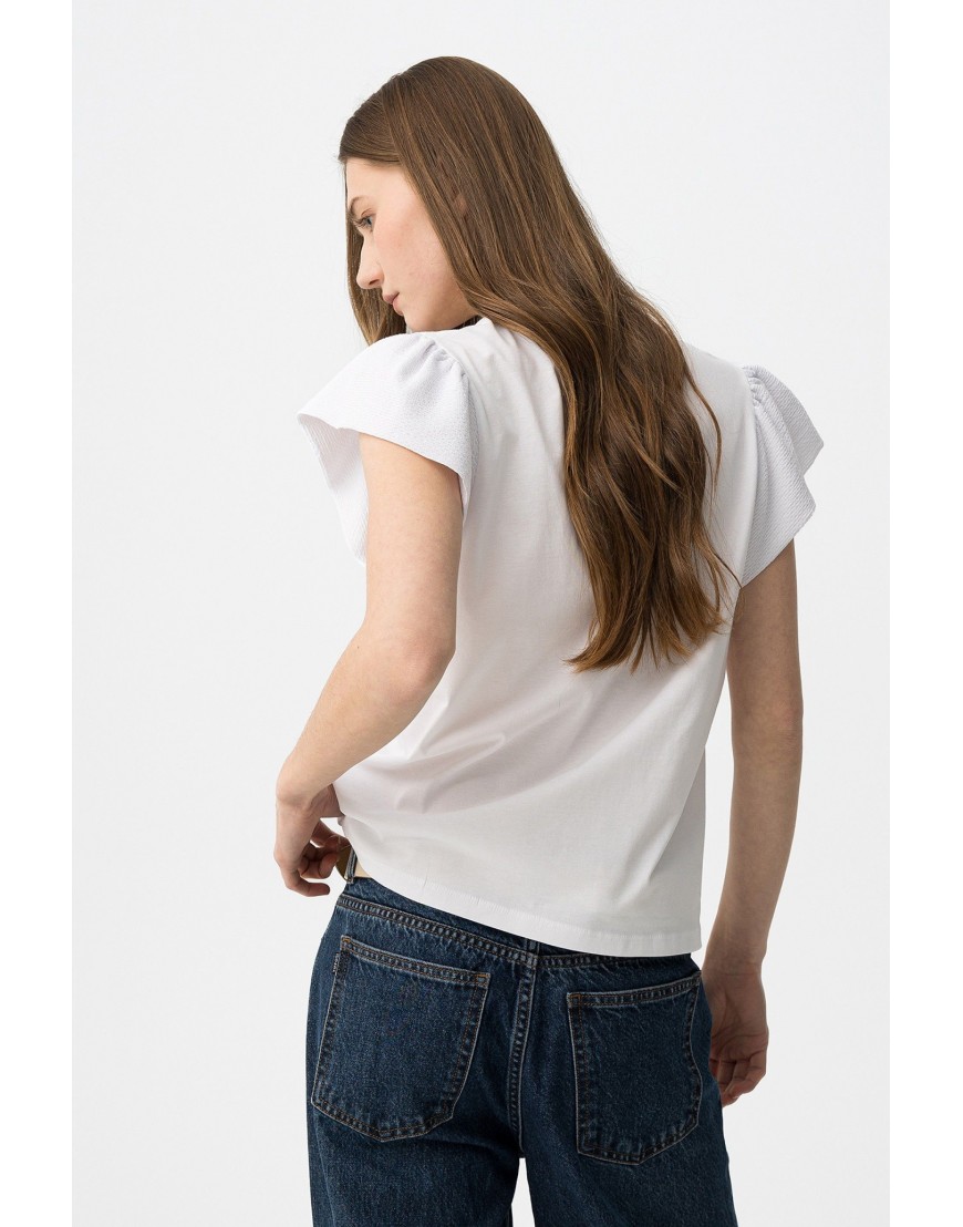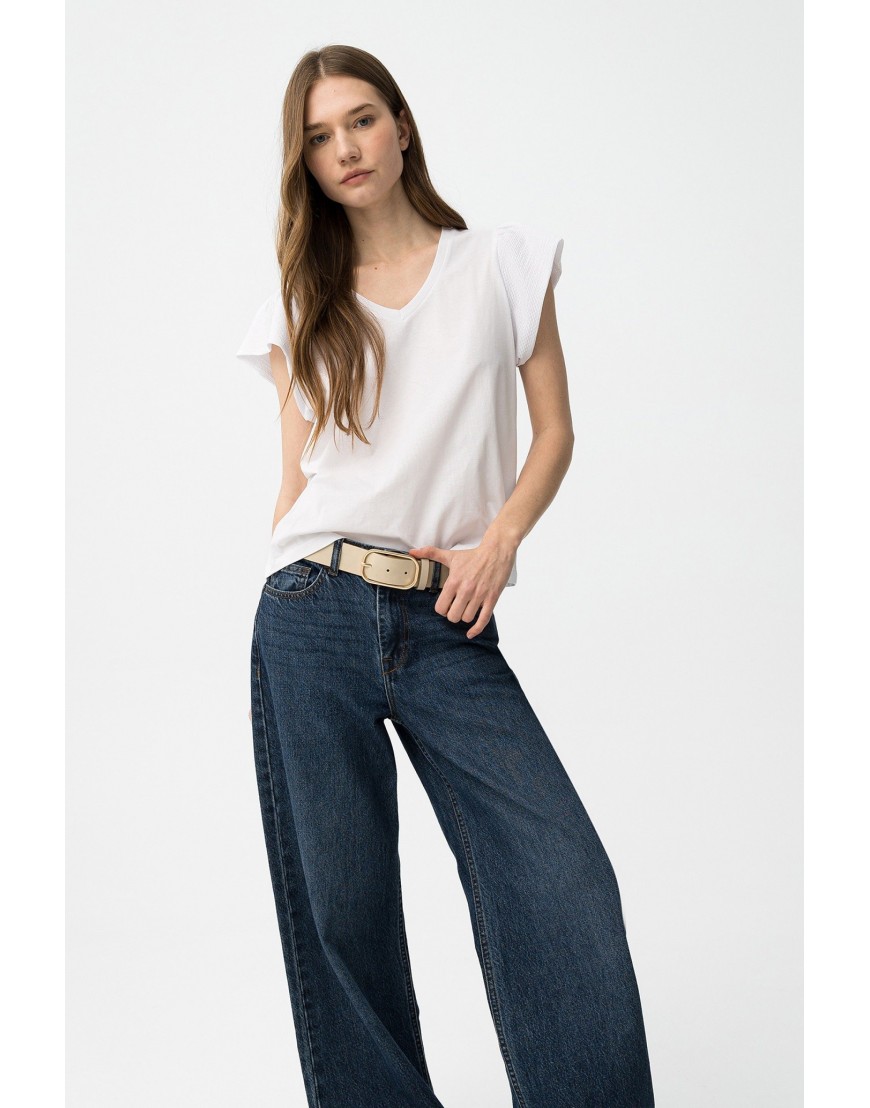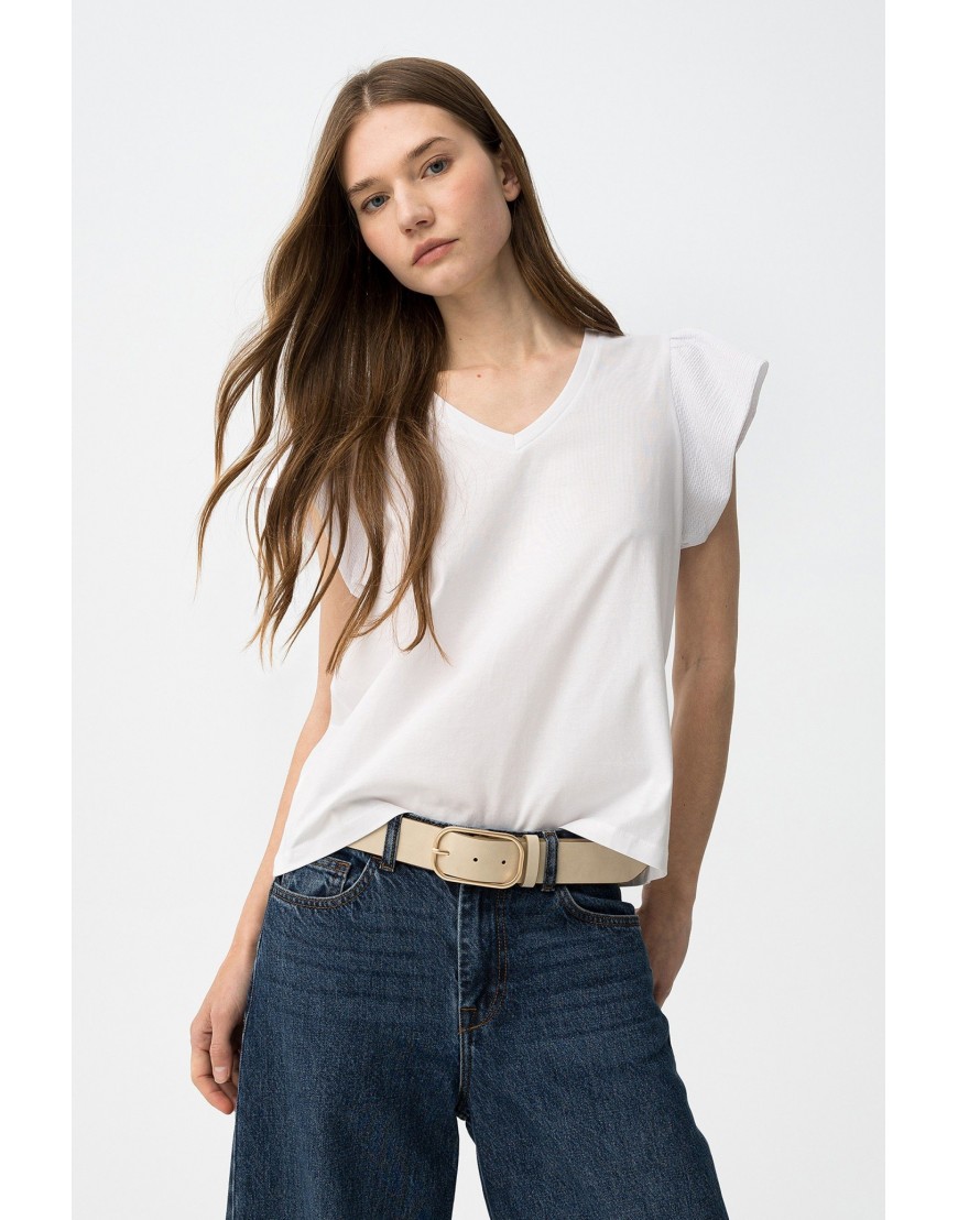 KIRA_V_22 Camiseta blanca de manga corta con corte regular y cuello en V, estilo casual y fresco.100% COTTON