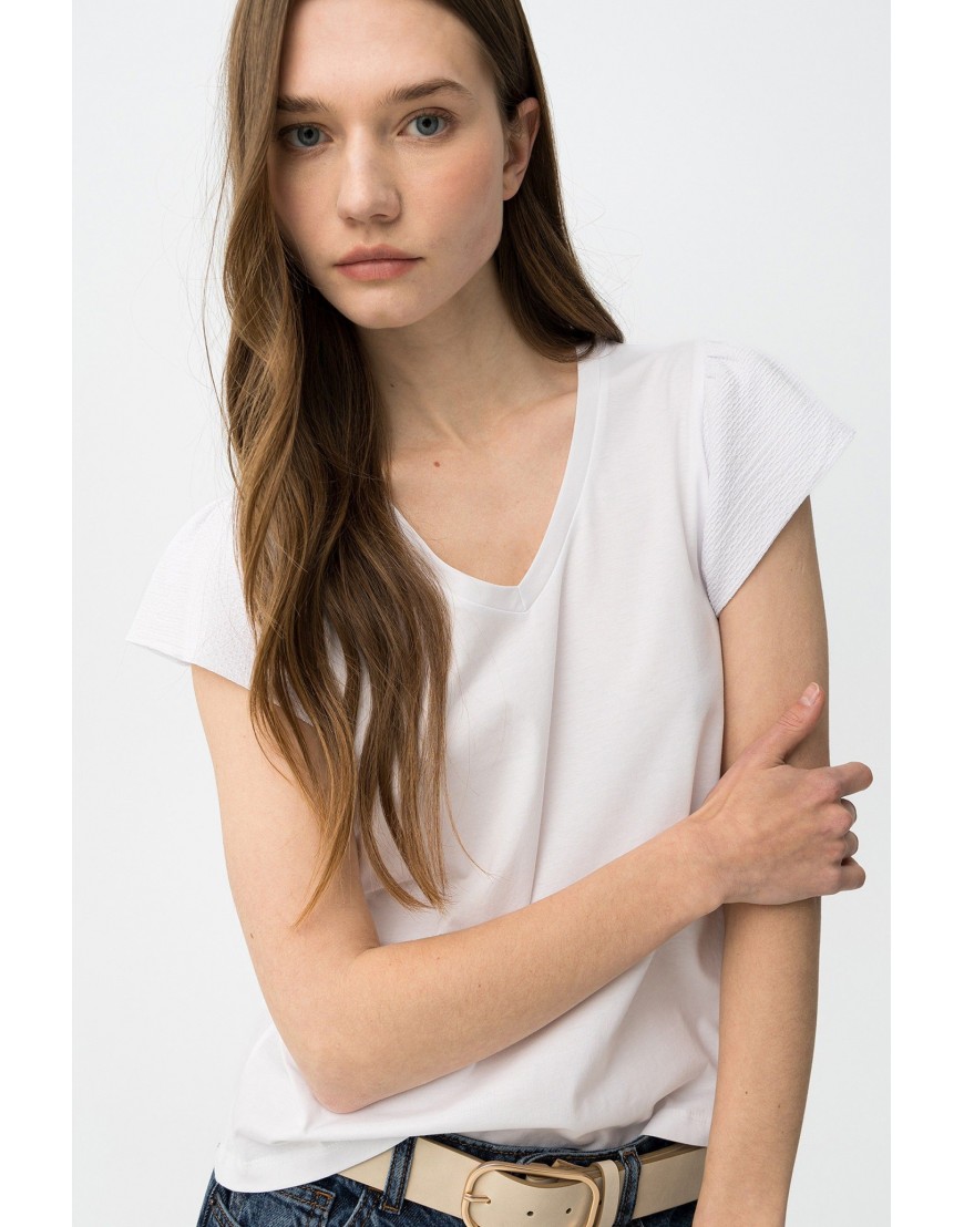 KIRA_V_22 Camiseta blanca de manga corta con corte regular y cuello en V, estilo casual y fresco.100% COTTON