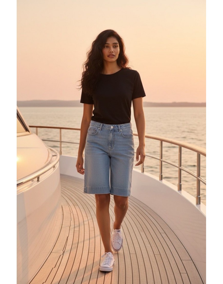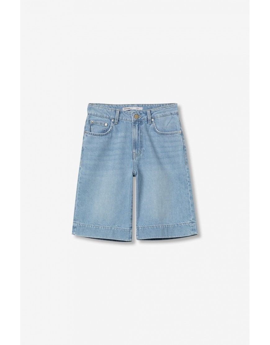 DOJA_4 Bermudas anchas de denim azul claro, cinco bolsillos, cierre de botón y trabillas en la cintura.100% COTTON