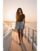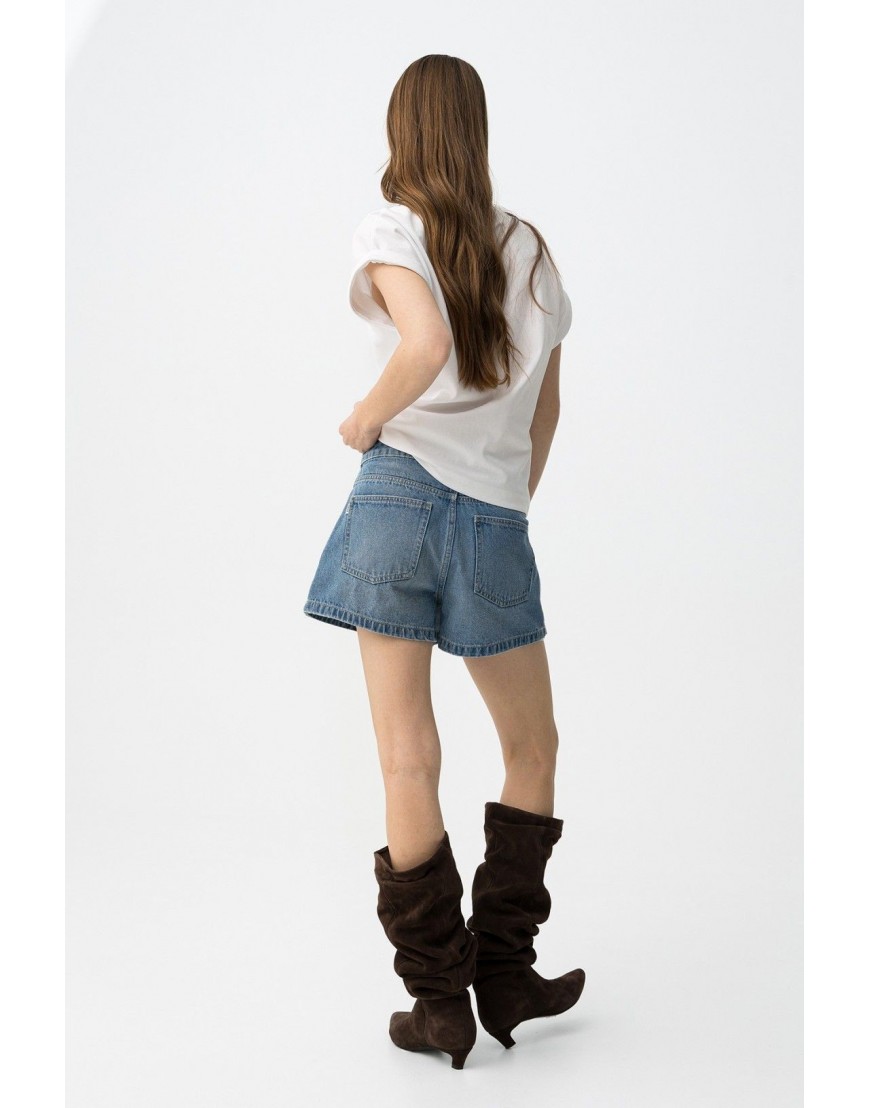 LOTTIE_1 Minifalda de denim azul, corte regular, botones metálicos delante y bolsillos traseros, rollo casual.100% COTTON