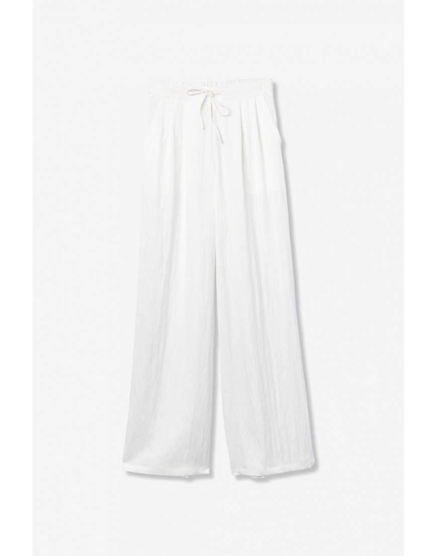 Augusta_B Pantalón ancho en color crudo, cintura elástica con cordón y tejido ligero, corte palazzo cómodo.59% POLYESTER 33% VISCOSE 8% POLYAMIDE