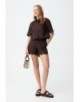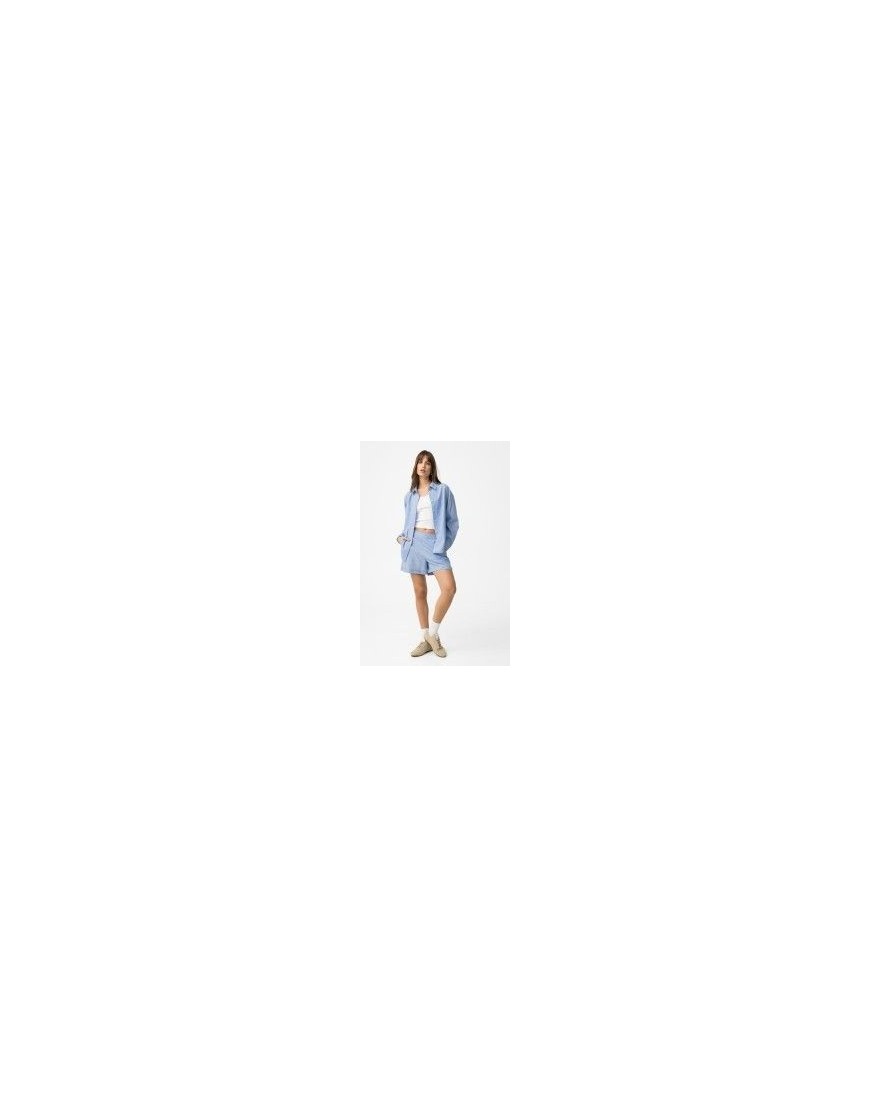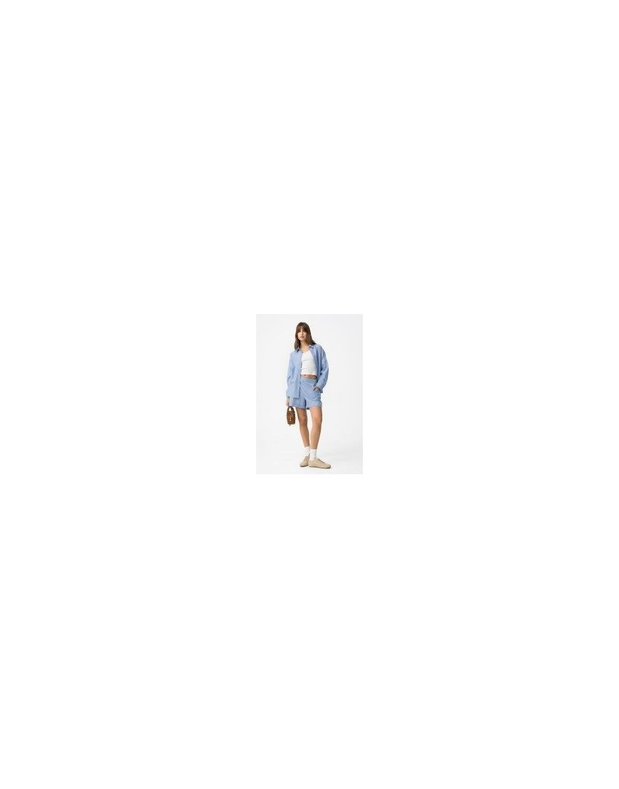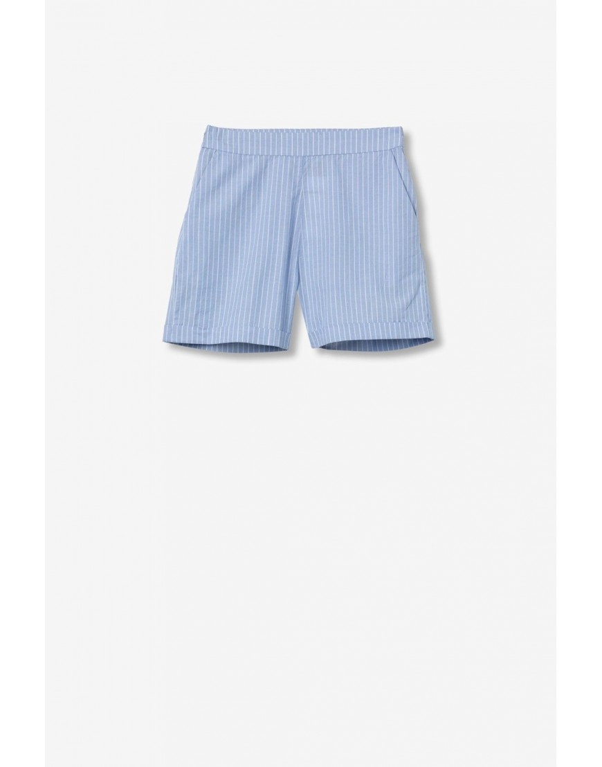 Lecas_B Shorts de corte recto en azul claro con rayas blancas, cintura alta y bolsillos laterales.100% COTTON