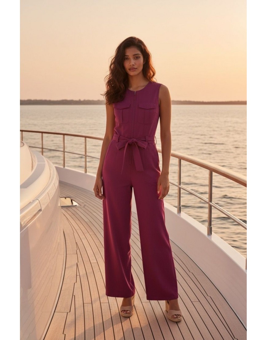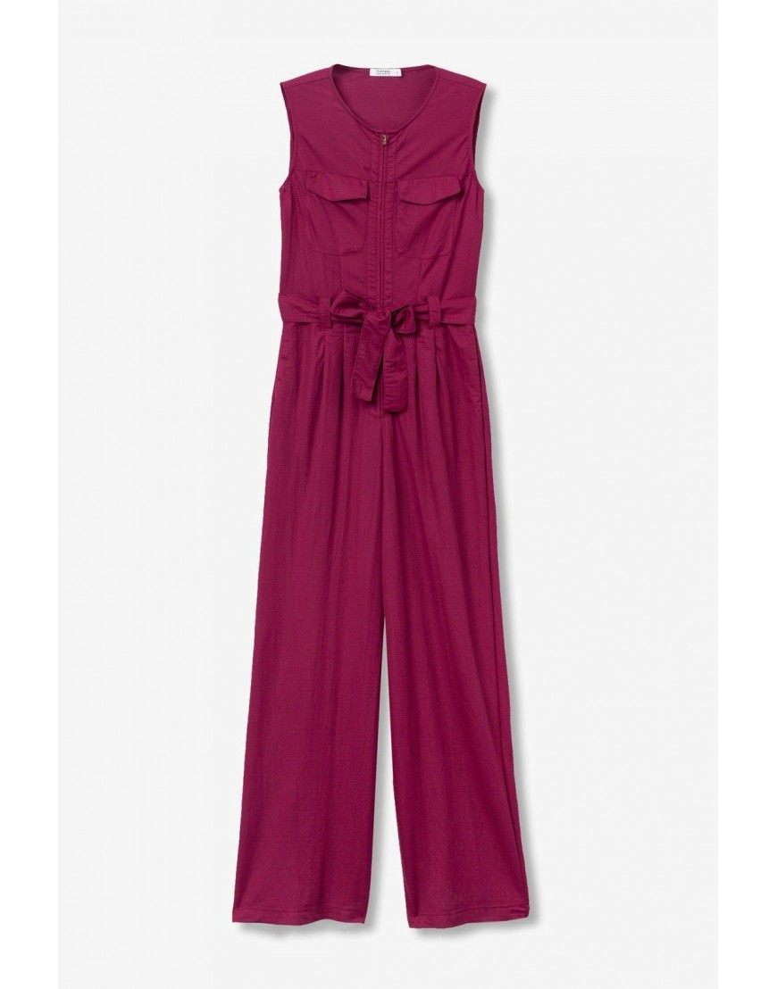 Flygon Mono largo de color rosa intenso, corte recto, cinturón a juego y bolsillos delanteros con solapa.53% VISCOSE 47% POLYAMIDE